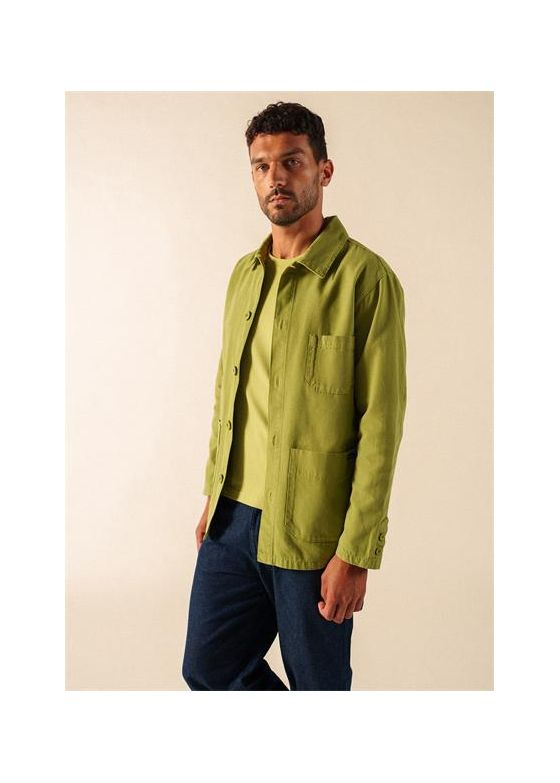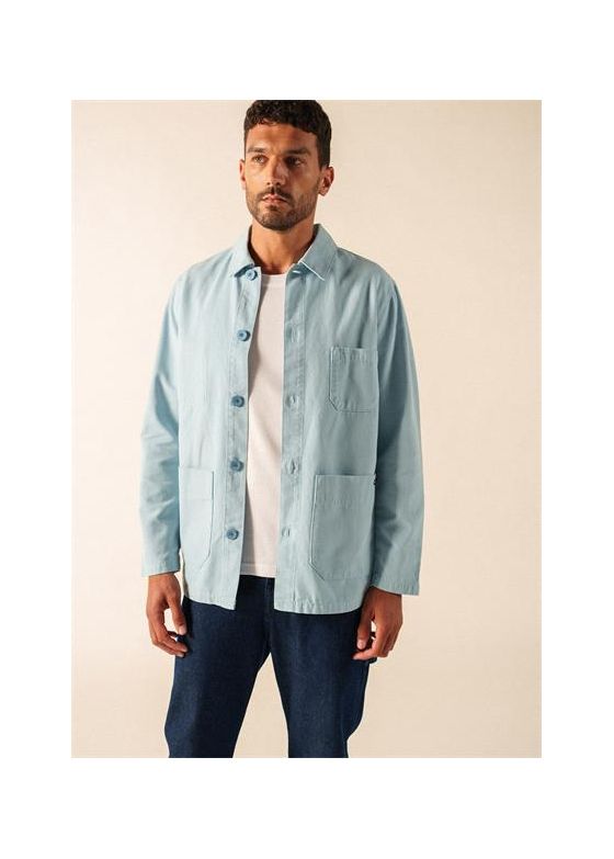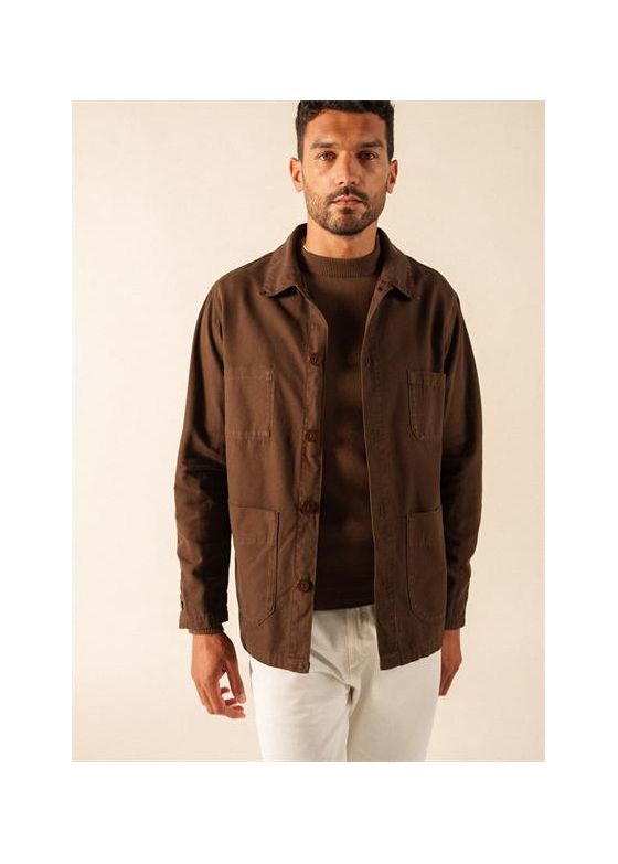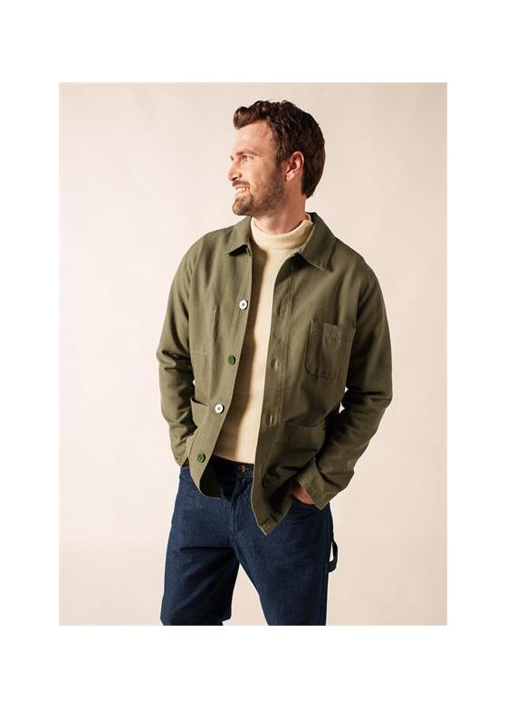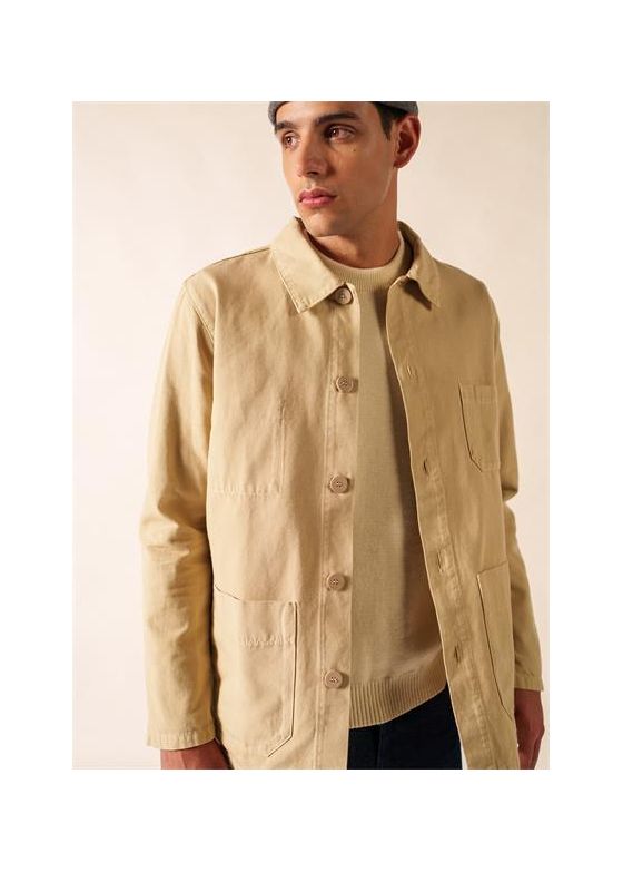 Veste avec col plat.Non doublée. Boutonnée. 2 poches plaquées avec pli plat.Longueur : 80 cm.