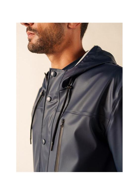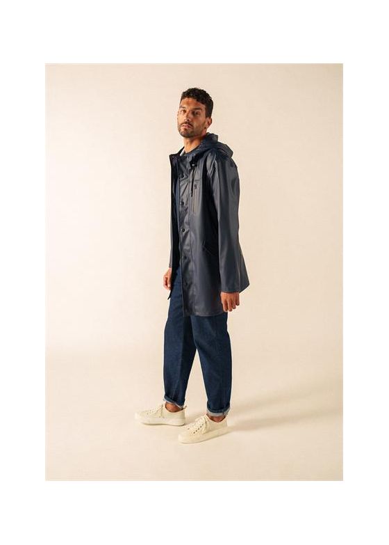 Une parka imperméable longue, épurée et efficace, qui protège bien tout en restant facile à porter en ville comme en bord de mer.